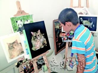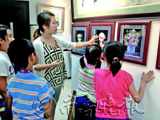 本报9月24日讯(记者 李孟霏) 一把丝绵、一把剪刀、一手精湛的技艺,靠着这些,丝绵画师傅可以制作出一幅幅精美的画作。21日下午,本报小记者及其家长来到高区海依达斯艺术馆,参观了丝绵画画廊,并现场观摩了老师们的创作过程。“原来丝绵也能做出这么美的画呀!”精细生动的表现手法,栩栩如生的动作姿态,让小记者们忍不住齐声感叹。 21日下午,天空飘起了雨滴,10名小记者和家长冒雨来到海依达斯艺术馆,参观有着“软浮雕”美誉的丝绵画。“妈妈,你看看,这个大熊猫毛茸茸的,真好看。”小记者方昱涵喊道。很多小记者听到喊声,纷纷聚过来了,大家仔细一看,画框里的大熊猫确实和平常的画不一样,就拿熊猫头部来说吧,眼眶、耳朵、鼻子、嘴巴……每一处除了颜色的渐变和晕染外,非常有层次感,逼真极了。小记者宋雨扬则站在一副名为《狼》的画作前,看了又看,她说以前只在电视里见过狼,此外再也没有见过这么逼真的。“你看它身上的每一个部位都是错落有致的,好像真的一样,我不敢在动物园里看,就在这多看几眼吧。” 如果说动物画作更能引起孩子们的兴趣来,那么人物肖像则更让家长们着迷。“你看看,这幅乔布斯的画像,简直就是他本人的感觉啊。”小记者毕嘉彤的家长说。此外,孙中山、钱学森的人物肖像画,也都让家长们驻足了很久,由于丝绵画特殊的工艺,丝绵纤维展现出了人物特有的肌理效果,生动逼真,让大家浮想联翩。 看到大家这么感兴趣,工作人员又带着孩子们和家长来到了制作车间,在车间内,大家看到了如此逼真的画作是如何诞生的。“哇,好多丝绵啊,五颜六色的真好看。”李声阳说,她以前经常见到丝绵,但是从来不知道用丝绵还能够画出画作来。丝丝缕缕的丝绵,在手工艺师傅的手中,一点点变为神奇的画儿。 “大家瞧瞧,丝绵画就是这样做出来的,比如这朵牡丹,先白描出雏形来,之后用不同颜色的丝绵打底,再一点点往上贴不同的丝绵,但是不是简单的贴,而是要经过揉、撵、捏等手艺,这样才能展现出层次感。”凤老师一边指着丝绵画,一边跟大家说到。而孩子们则认真的听着,一点点的感受着艺术的神奇和魅力。 一个小时的体验活动很快结束了,但是大家仍旧意犹未尽,李声阳和老师悄悄要了一把丝绵,准备回家试验一把,“我要做一个心型的东西,到时候送给妈妈。”