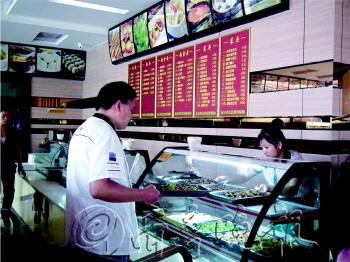 随着人们生活和工作节奏的加快,越来越多的市民难以留出大量的时间用在做饭上。中式快餐实惠便捷还干净卫生,近两年犹如雨后春笋般出现在济宁市区一些重点街道,在餐饮业普遍不景气的情况下逆市上扬。 主打家常菜受到市民欢迎 25日上午,记者在古槐路和海关路上看到了4、5个中式快餐店。据百氏馅饼的一位工作人员介绍,他们现在在济宁城区就有十二三个店,分布在市区的各个主要繁华路段。 在位于古槐路的新食带快餐内,记者看到,虽然刚过10点,但是已经有不少市民在餐厅内就餐。到12点左右,多个中式快餐店内顾客都已经排起了长队。“一般是上午11点到下午1点30分人最多。”新食带快餐的工作人员说。 “我们卖的都是‘家常菜’。”所有的中式快餐店都给出了这样的说法。记者发现每个中式快餐店内的菜类都在15种以上,还有各种花卷、包子和汤。“多数都是家庭会做的菜,只有一两个是店里的特色菜”新食带快餐的工作人员告诉记者,“他们在中式快餐店吃饭,就和在家里一样。”记者了解到,有的消费者甚至一天三顿都在中式快餐吃。