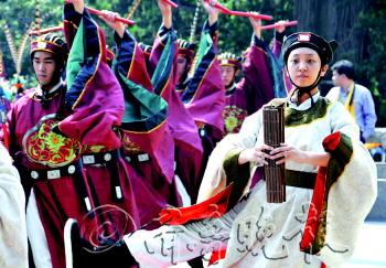 | 28日祭孔大典上,“乐生”正在进行乐舞表演。 本报记者 张晓科 摄