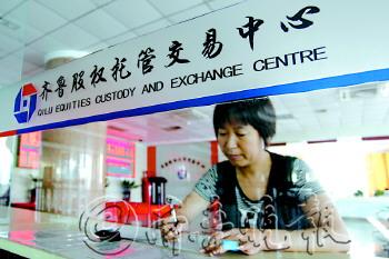 | 近日,一市民在齐鲁股交中心办理相关手续。本报记者 王鑫 摄 |