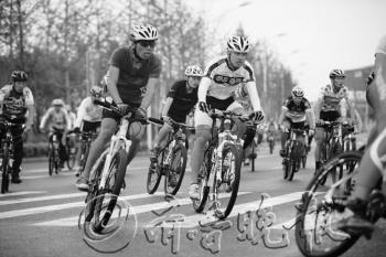 28日,在高新区中央智力岛,选手们正在参加2013青岛高新区第一届“科创慧谷杯”公路自行车赛。当日,12公里的赛程共吸引了国内外近100名专业运动员以及高新区近200名业余车手参赛。 本报记者 张晓鹏 摄影报道