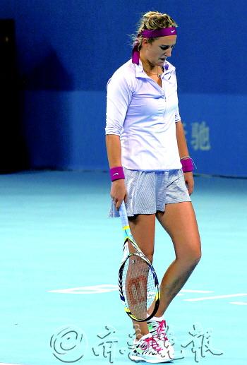 9月30日的北京依旧在雾霾之下,而中网的赛场上,傍晚的凉风似乎让WTA的“女王们”也受凉了。在没有李娜比赛的这一天,女子赛场的冷门让中网赛场更显冷清。 本报记者 许恺玲 9月30日发自北京 卫冕冠军“一轮游” 虽然在美网打进决赛,又是中网的卫冕冠军,但世界排名第2的白俄罗斯名将阿扎伦卡在今年的中网却有些低迷。在这场耗时2小时23分钟的争夺里,阿扎伦卡浪费掉决胜盘率先破发的领先优势,并且先后送出了15个双误。最终中网首战就以1:2不敌德国名将佩特科维奇,惨遭淘汰。 30日的比赛,阿扎伦卡显然不在状态,多次出现非受迫性失误、发球双误,情绪上也偶有波动,还和裁判发生了判罚上的争议。“针对今天的比赛,我做了很多准备,比赛中出现多次失误,这也是没有办法的事情,这个结果我只能接受,没有任何借口。”至于情绪的激动,阿扎伦卡解释说,“原因有很多,有的也没有办法在发布会上说,我当然希望越打越好,包括发球,但是任何球员都有好和不好的一面,不能保证一直都有好的状态。”