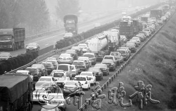 | 1日,济青高速遥墙段出现大面积拥堵。 本报记者 王鸿光 摄 |