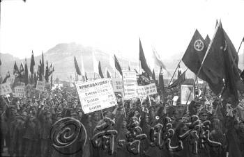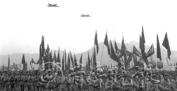 在新中国成立一周年时,省会济南举办过盛大的国庆游行活动。而且,这些当年的盛况都被《大众日报》的摄影记者们用胶片相机拍摄下来。 1950年10月1日,济南各界人民庆祝中华人民共和国成立一周年大会在现省体育中心旁边的体育场旧址隆重举行。在黑白照片上,主席台上方的“济南庆祝中华人民共和国国庆节大会”横幅非常醒目,庆祝大会会场的彩门上红旗飘扬,高举着国家领导人肖像的游行队伍十分整齐,游行队伍上方还有空军飞机在展翅翱翔,整个会场显得既庄严又热烈。而在街头,庆祝国庆的秧歌队正在翩翩起舞,由济南中学师生组成的宣传队正在惟妙惟肖地演出剧目……画面虽无声,却传递出建国初期人民群众发自内心的喜悦之情。