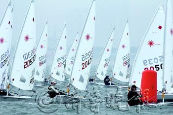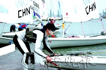 文/片 本报记者 刘涛 1日,备受瞩目的激光雷迪尔世界帆船锦标赛迎来首日比赛,来自美国、英国、法国、俄罗斯、澳大利亚、日本、韩国、新加坡等31个国家的86名运动员参赛。本届激光雷迪尔级帆船世界锦标赛共有12轮比赛,设有8场资格赛和4场决赛,每场约70分钟。 帆船运动是靠风在帆上产生动力推动船前进,因此风是帆船运动能否顺利举行的关键因素,通常比赛期间需持续风速达到2.5米/秒以上,风速超过15-20米/秒时,要考虑安全因素而停止比赛。 1日早上9点,运动员陆续来到日照世帆赛基地等待下水信号,但由于风力较小,运动员迟迟未被“放行”。记者在现场看到,等待期间,运动员有的相互交流,有的闭目养神,岸上一片轻松气氛。上午11时左右,组委会鸣发下水信号,紧张的气氛陡然而生,各国运动员立马收拾装备准备下水。 帆船下水处,2012年奥运会冠军徐莉佳脸上涂厚厚的防晒霜,在教练的陪同下将编号为205009的帆船推入水中。徐莉佳此次比赛并没有给自己太大压力,仅仅给自己定下取得前十名目标。 运动员下水后,并没有马上进行比赛,海上风力变小,依然没能比赛要求。在等待了一个多小时后风力终于达到比赛要求,12时比赛开始的信号终于打出,一时间几十条帆船向目标进发。