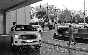 | 10月1日,核查专家乘专车抵达大马士革的酒店。 新华社发 |