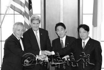 据新华社10月3日电 日本外相岸田文雄、防卫大臣小野寺五典与美国国务卿克里、国防部长哈格尔3日在东京举行日美安保磋商委员会(2+2)会晤。双方表示将加强日本自卫队和美军的防卫合作,并在明年底前完成日美防卫合作指针的修改工作。 岸田文雄说,此次会晤是向国内外展示“强有力”的日美同盟中长期方向的良机。克里说,此次会议将构筑未来15年至20年日美同盟的框架,相信通过磋商,可以迈出美日两国安保战略的重要一步。 双方发表的联合声明说,将着手修改16年前一度修改的日美防卫合作指针,以确保日美同盟的可靠性。两国将在太空和网络空间等新战略领域进行合作,美方对日本政府修改关于行使集体自卫权的宪法解释、制定国家安全保障战略和增加防卫预算等“表示欢迎”,将与日方密切合作。 关于减轻冲绳的美军基地负担,联合声明说,将减少部署在冲绳的“鱼鹰”倾转旋翼运输机的训练和驻扎时间,并将普天间基地迁至冲绳县名护市边野古地区。 日媒分析,日美修改防卫合作指针的目的在于加强自卫队和美军的防卫合作,让自卫队发挥更大作用。此举有利于安倍政权争取允许自卫队行使集体自卫权的讨论,修改防卫合作指针意味着日本安保政策将发生重大变化。 1978年11月,日美两国制定了日美防卫合作指针,以推进两国在军事方面的合作。1997年,两国首次修改日美防卫合作指针。1999年5月,日本国会通过了《周边事态法案》《自卫队法修改案》和《日美物品劳役相互提供协定修改案》等相关法案,明确日美两国各自的作用和分工,加强了军事合作关系。