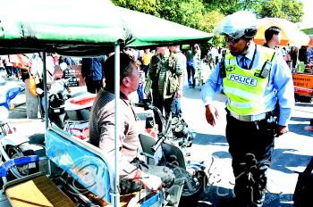 本报10月3日讯(记者 王倩) 节假日,到大明湖、趵突泉、千佛山等景区游玩的游客增多,这带动了周边的消费能力,有一些不法商贩就把摊子摆到了景区周边,占据了非机动车道。同时,景区周边也出现了黑摩托占道、机动车乱停乱放的情况,历下交警两天时间内就抓拍违法停车1129辆。 3日上午,记者来到大明湖西南门附近时看到,与往日这个时间段道路畅通的情况不同,周边道路出现了拥堵的情况,而拥堵主要是由非机动车道被占用造成的。 在由东向北拐弯的非机动车道上,卖冬枣、煎饼果子、鸡肉卷、棉花糖等商品的小商贩的三轮车把非机动车道占得满满的,而且每辆三轮车前都围着一些正在购买的市民,电动车、自行车根本无法正常通行。无奈,一些骑车的市民只得把车骑到了机动车道上。 有市民向记者抱怨,来济南旅游的游客都要来看大明湖,景区周边是游客对济南的第一印象,“你看这周边这么乱,让外地人怎么看济南呢?” 在大明湖西南门周边,除了摊贩占道经营情况,记者在三大名胜看到,黑摩托三轮车占道情况也普遍存在。记者在现场调查的过程中,就有两三辆黑摩托三轮的司机“招呼”记者,“要到哪里去?送你过去,便宜、方便。” 这些摩托三轮车也像摊贩的三轮车一样,停在了非机动车道上,有的甚至停到了机动车道上,把道路堵得死死的。 针对景区周边摊贩占道经营、摩托三轮占道以及机动车乱停乱放的情况,历下交警部门对大明湖西南门等辖区内三大景点及商业网点周边违法占道的情况进行了查处和清理。据民警介绍,在整治行动中,他们发现很多车辆的车主不在现场,但将车辆停放在彩道(非机动车道)上,而且长时间占压,给周边的交通通行情况带来压力和隐患。 交警部门将长时间占压彩道,严重影响非机动车通行,给交通安全带来隐患的机动车依法拖走,并提醒车主前往交警部门接受处理。据统计,仅10月1日、2日两天,在历下区三大景区及商业网点周边就抓拍违法停车1129辆次,拖车28辆,扣车16辆次。