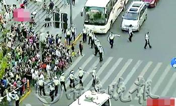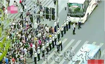 | ▲在上海外滩一路口,红灯时交警站成一堵墙,绿灯时则转换队形,护送人流过马路。 (视频截图) |  | |  | |