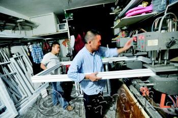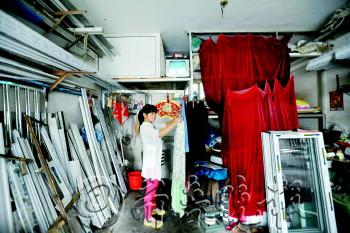 | 国庆假期接的活儿多,黄小青父子俩互为帮手,忙着给客户的阳台封塑钢。 |  | 10月3日深夜,黄小青父子俩还在赶活儿。 |  | 每天回家抱抱孙子,是黄小青最得意的事。 |  | 铝合金加工和洗衣做饭都在这个出租屋内。 |  | 黄小青的妻子在铝合金搭建的二楼上看孙子。 |