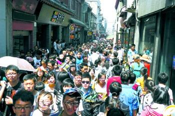| 每逢节假日,济南古街芙蓉街都会迎来全国各地的数万游客,导致严重拥堵。 (资料片) 本报记者 周青先 摄 |