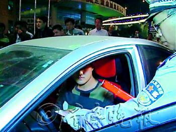 | 10月5日晚,北园大街,一辆济宁牌照的银色轿车闯关,开出几十米后被民警拦下,司机不仅喝了酒还无证驾驶。 (视频截图) |