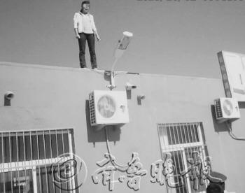 | 小张爬上饭店楼顶,扬言要跳楼。 (图片由警方提供) |