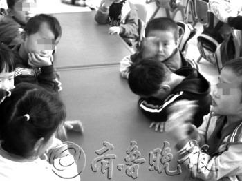 | 看到其他孩子嬉笑打闹,运运低头趴在了桌上。 张林 摄 |