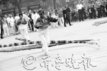 | 一位老人表演抖空竹。本报记者 张晓科 摄 |