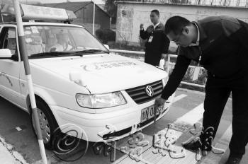 | 9日,德州举行机动车教练员技能比赛,考核人员用卡尺对坡道定点停车和起步进行考核。
