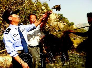 | 从大网上解救下来的候鸟被放飞。 杨林 摄 |