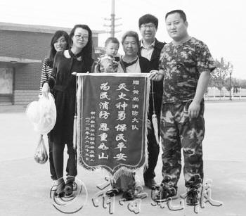 本报10月9日讯(记者 周衍鹏 通讯员 滕斐) 一场大雨突降,将驾车外出的薛先生和母亲困在水中,积水随着雨势的增大越来越深,紧要关头,开发区消防官兵冒险跳入水中推车,最终成功将两人救出。9日,薛先生一家向参与救援的消防中队赠送锦旗表示感谢。 9日上午,家住开发区柳沟社区的居民薛先生同家人一起,赶到开发区消防大队特勤三中队送上一面锦旗,感谢半个月前消防官兵涉险跳入深水中,救出被困车内的他和母亲。 原来,9月23日18时46分,开发区消防大队特勤三中队接到报警称,位于淮河路小石头红绿灯西侧一辆轿车由于路面积水太深陷入水中,请求援助。接警后,消防官兵迅速赶往现场。到达现场后看到,轿车中有两人被困,路面上的水位已经没到腰处,并且随着雨势增大,水位不停升高。被困的薛先生在看到救援人员后,大声告诉救援官兵,排气筒已经进水,导致车辆熄火无法启动。 情况紧急,中队指挥员迅速下达救援命令:一是安排水性较好的战士跳入水中,将被困司机及其母亲救上岸;二是利用抢险救援车牵引拖动汽车至无水区。经过10分钟,被困轿车在救援车的牵引和水中推车官兵的合力下,成功离开积水区。刚把轿车推出水面不久,薛先生的母亲接到女儿电话,称孩子被反锁家中,自己却忘带钥匙开不开门,家里厨房燃气灶上还在做着饭。消防官兵立即驱车赶到现场,利用6米拉梯从二楼窗户进入室内关闭了炉灶,所幸救援及时,未引发火灾,家中的孩子也安然无恙。看到房门被打开,薛先生一家人悬着的心才放了下来。