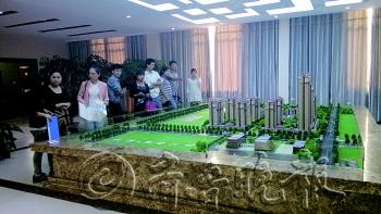 | 9日下午,不少市民在长信书香河畔售楼处看房。