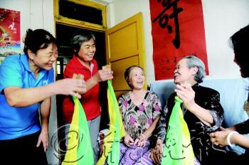 | 社区志愿者走进空巢老人家中表演快板。 本报通讯员 刘丽丽 摄 |