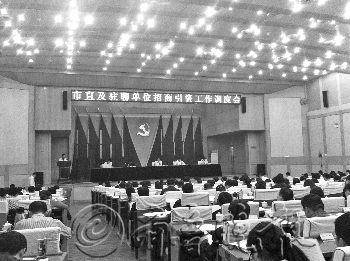 | 9日上午,聊城召开市直及驻聊单位招商引资工作调度会。 本报记者 张跃峰 摄 |