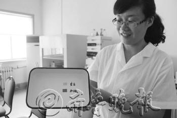 | 实验显示,检测出镉超标的试纸呈现出桔黄色,而用作对照的空白试纸则呈现淡黄色。 |  | 研究员正用快速检测试纸检测液体是否含有砷,并粗测砷的含量。 |
