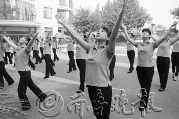 市老福中心举办员工广播体操比赛来丰富员工的课余生活。 本报记者 姜文洁 摄