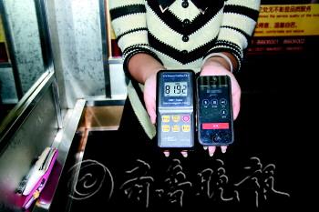 | 电梯内拨打手机,手机辐射峰值为81.92μT。 本报记者 穆静 摄 |