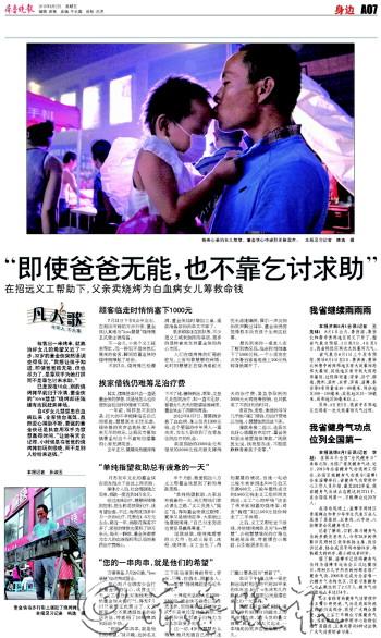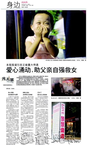 今年夏天,“love 慧慧”烧烤摊给众人展示了一个“80后”爸爸自尊自强为女儿战胜病魔而努力奋斗的感人一幕。由此在社会各界中拉开的一场“有尊严的救助”更是感动了无数人。 烧烤摊,为女儿撑起一片天 4岁的女儿突然查出患有白血病,在花光积蓄,借遍所有亲朋之后,32岁的爸爸董金侠不等不靠,开起烧烤摊。他想凭自己的双手和努力,而不是单纯等待救助,为女儿赢得同生命赛跑的时间。 尊严无价,董金侠的自强打动了很多人。本报自8月2日起连续报道后,爱心企业纷纷送肉捐酒,热心市民也通过到烧烤摊消费、认购“love 慧慧”烧烤爱心券给这个自强爸爸以支持。省慈善总会、阿里公益天天正能量、招远当地政府部门和爱心企业也陆续倾囊相助,先后为慧慧筹得10万余元的治疗费。 在爱的包围下,慧慧按期化疗,身体状况也渐渐稳定下来。小慧慧和前来帮忙的义工以及经常光顾烧烤摊的爱心客人们成了好朋友,经常跟着他们四下玩耍,到处体验新鲜东西。如今,慧慧已然适应了市区的生活,更加开朗活泼,见了人远远地就会打招呼,乐观的性格似乎并没受到病痛的影响。 让人感动的是,年仅4岁的慧慧更多时候会忽略病痛,反而为自己的学习担忧起来。烟台大年超市捐助爱心白酒和罐头时,小慧慧就曾一度因学不会写义工的名字而难过地躲到一旁叹气。 一份爱,牵系万家情 天气渐凉,“love 慧慧”烧烤摊已搬进室内,慧慧爸爸董金侠正苦练厨艺,希望即使烧烤淡季后,也能凭借自己的手艺留住更多顾客,继续给慧慧筹集救命费。最近,董金侠也在考虑向周边招远皮革城等地送外卖,苦点累点没关系。 在烧烤摊的尝试获得初步认可后,这个曾经被女儿的病情折磨得不成样子的男人渐渐有了自信,人也跟着活泼起来。店里不忙的时候,董金侠偶尔也和义工插科打诨地开开玩笑。被大伙的热情帮忙感动着,只要能做到的,他也愿意尽可能地去帮助其他人。 这样的变化不仅出现在董金侠身上,慧慧的妈妈王婷婷也因这场爱心救助变得开朗勇敢起来。尽管依然为女儿的病情担心,也曾在幼儿园开学典礼上哭得泣不成声,但看着慧慧的病情渐渐稳定,这个曾经内向到几乎不敢和陌生人说话的妈妈,脸上也多起了笑容。王婷婷招呼客人的步伐逐渐轻快起来,独自带着慧慧看病时也更加勇敢坚强了。 “love 慧慧”烧烤摊的出现还在更大程度上改变着前来帮忙的义工们。这群最初走进慧慧一家的陌生义工们,尽管守在烧烤摊前帮忙的一个多月几乎都累垮了,但大家伙都咬牙坚持了下来。在这里,一群原本相互陌生的人,因为同样的爱心渐渐变成了极为要好的朋友。大伙没事的时候都喜欢凑到烧烤摊上,帮帮忙,聊聊天。“love 慧慧”烧烤摊某种程度上也成了这些义工心里温暖温馨的小窝。 而如今一切的一切,都是自强爸爸董金侠以前从不敢想象的。 本报对父亲摆烧烤摊自强救女一事进行了连续报道,在全社会引起了一场正能量大传递。