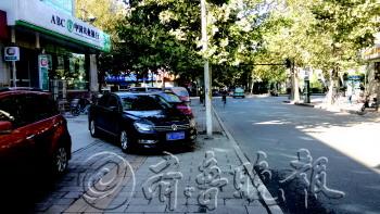 | 张店西二路一段盲道被车辆占用。 本报见习记者 唐宁 摄 |