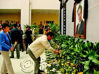 | 捐赠仪式上亲朋好友敬献鲜花。 本报记者 贾凌煜 摄 |