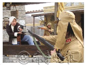 在济南中华民族欢乐园,泼水节、秦琼马战、山洪暴发等很多观赏和参与的节目都很有意思,但最引人入胜、让游客忍俊不禁、兴趣盎然的还要数“地道战”。图为“地道战”中的场景。