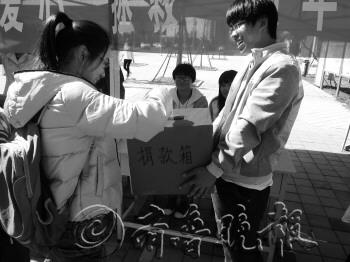 | 躺在病床上,薛焕平乐观面对。 |  | 薛焕平的同学正在为她募捐。 |