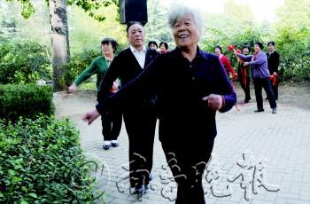 | 在市人民公园内,十几位老人正在排练舞蹈。