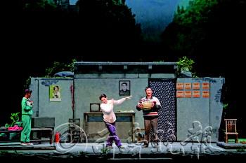 | 16日,沪剧《挑山女人》在淄博剧院上演。 本报记者 王鑫 摄 |