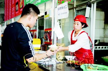 ◥在烟台大学一食堂,米饭一元一份,不够可免费添。     本报记者 韩逸 摄
