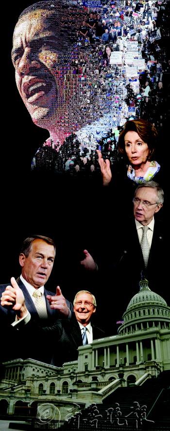 现在,你要是没看过一部美剧,都不好意思跟人交流。最近正在上演的一出“美剧”就引人关注,不仅演员阵容强大,而且剧情跌宕起伏、悬念丛生,虽然结局在意料之中,但其可看性不亚于任何一部真正的美剧。 这部“美剧”的主旋律围绕“兜里没钱”和“债务触顶”展开,美国总统奥巴马,众议长、共和党人博纳,参议院多数党领袖、民主党人里德,众议院民主党领袖佩洛西,参议院共和党领袖麦康奈尔等政坛大佬粉墨登场,围绕2014财年政府预算案和提高美国债务上限这两大议题,在国会参众两院上演对手戏。 如果说这部剧的演员仅集中在华盛顿,那么观众则遍布全球,其影响上至各国政要,下至平民百姓。好在这部剧暂且圆满落幕,关于它的续集,或许会在明年初上映。 □本报记者 赵恩霆