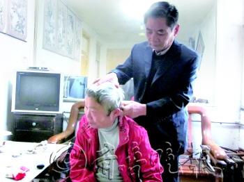 本报菏泽10月18日讯(记者 赵念东) 10月8日,本报以《夫妻本是同林鸟 大难临头一起飞》为题报道了牡丹区南城办事处中意社区张振茂不离不弃,照顾瘫痪在床的老伴15载,受到了社会爱心人士的关注。18日上午,单县擅长按摩治疗疗法的退休医生孙时宪来到张振茂家中,免费为王爱梅进行按摩治疗,王爱梅有望重新站立,开口说话。 上午10时许,记者随孙时宪来到张振茂家中,此时张振茂刚伺候老伴吃完饭。简单了解王爱梅的病情后,孙时宪表示,通过按摩跟热敷的方式对治疗因脑溢血引起的瘫痪具有一定功效,“如果治疗顺利的话,通过按摩的方式,王爱梅能够在搀扶下站起来,开口说话。” 随后,孙时宪对王爱梅的头部与背部按摩了约20分钟。孙时宪表示,由于王爱梅已瘫痪15年,时间耽搁太久,需要长时间的治疗,而张振茂家中条件有限,来往路程又远,如果张振茂同意的话,他准备将接王爱梅到单县进行免费治疗。 “原来我们就放弃治疗了,想着她病一天,我就照顾她一天,或者她先走,或者我先走。”张振茂说,除了在梦中,从来没想过她有恢复的一天,“既然有恢复的机会,我便会紧紧抓住。”张振茂说,针对去单县治疗,他会好好跟家人商量。
