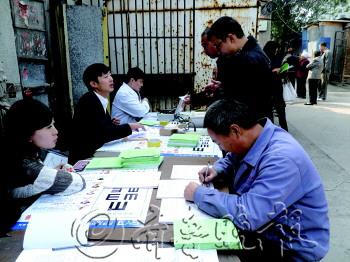 18日,菏泽市总工会“19援助日”深入基层活动来到菏泽天香毛纺厂宿舍区。工作人员为这里的下岗职工提供免费法律、生活、就业援助,并为他们建立了援助档案。医务人员现场还为他们进行了眼科疾病检查。市总工会将每月19日定为全市工会“19援助日”,市总工会及各县区同时举办援助活动。