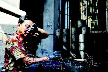 文/片 本报记者 王媛 咔嚓、咔嚓、咔嚓……21日早上7点多钟,位于济南万紫巷东街的仁丰煤店内,昏黄的灯光下,老式的制煤机开始工作了。送煤工人开始忙着装车、过磅,外出送煤。李光银在陈旧得看不出颜色的地排车上装满了600多斤蜂窝煤,然后猛吸了一口烟扔在地上,背上拉绳,用力一压车把,“吱扭吱扭”地出了门。 李光银是该煤店的送煤工,今年54岁,老家东平新湖。1998年,经朋友介绍,他来到济南万紫巷煤店(现为仁丰煤店),拉着地排车挨家挨户地送煤,这一送就是15年。那辆破旧的地排车,也一直跟着他到现在。 煤店王经理介绍,现在不少送煤工的地排车都换成了电动三轮车,但是李光银的地排车一直没舍得换。 当日李师傅送煤去天桥东的老顾客贾大爷家,贾大爷一见李师傅拉着煤来了,赶紧上前帮忙推车,送煤到了家里,贾大爷早就准备好了水果和热水。 这么多年过去了,李师傅在济南依然只是个打工者,他的老伴在东平老家,小儿子虽然在济南遥墙机场工作,但工作很忙,他跟儿子很少见面。“上次见儿子是两个月前了,办了件大事。” 原来,李师傅用这些年来打工的钱给25岁的儿子付了首付,在遥墙附近买了房子。“这样他就好找对象了。”李师傅笑着说。 送完煤已是下午6点半多,李师傅拖着疲惫的身体回到煤店,“咔嚓、咔嚓”又装好一车煤,“太忙了,装好明天一早去送。”