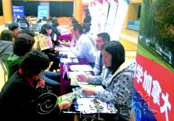 本报10月27日讯(记者 阳佳) 孩子现在读高一,什么时候申请留学最好?闺女的大学专业是英语,去国外可以读会计吗?10月27日上午9点半,由本报联合青岛精合文化传播有限公司共同举办的第十届烟台国际教育展在烟台市解放路中银大厦举行。 27日,上午9点半还不到,就有不少父母为了孩子的留学问题前来向专家请教。在留学问题上,家长们的关注角度不仅仅是学费和学校等传统性问题,也包括留学的专业衔接、课程安排等比较细致的问题。 记者发现,教育展上前来咨询的多是父母或是祖父母辈,鲜见“留学主角”。莱山的于先生告诉记者,自己的女儿在中国石油大学念书,现在念大三,专业是英语。家里希望她去欧美国家留学,“就图个语言环境,把口语练好。”不过女儿似乎不大愿意。 当工作人员询问孩子有哪些具体的打算时,于先生傻了眼。博纳教育留学问题咨询专家王倩倩建议于先生,可选择翻译专业或是英语教育专业。但最好还是先听取一下孩子的意向,结合孩子的兴趣爱好有的放矢。 从咨询情况看,欧美国家仍是留学选择的热门目的地。不过,据北京航空航天留学服务有限公司的留学顾问矫健介绍,关注日韩留学的人有明显增多的趋势。这些国家在文化、教育理念等问题上都与中国有更多的共通之处,而且教育发达,留学资费相对要低,成为不少学生的首选。