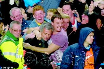 切尔西绝杀曼城,穆帅冲上看台遭强吻