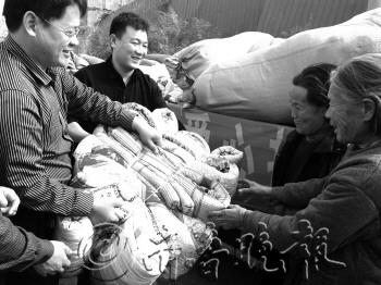 27日上午,济宁市华森伟业公司负责人带着价值近5万元的上千件棉衣、棉被来到泗水县泗张镇罗家庄村,为这个山村的群众送来了御寒衣物。据了解,罗家庄村有二百多户居民,是典型的山区贫困村。该公司负责人得知这一情况,在朋友圈里发起了一场“情系泗水爱心捐赠”的公益活动,在寒冬到来之前,为困难群众送来了温暖。 本报记者 王海龙 摄