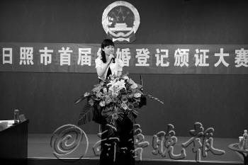 |  | 日照举办的结婚登记颁证大赛,检验颁证员能力。 |  | 颁证员都得持证上岗。 |