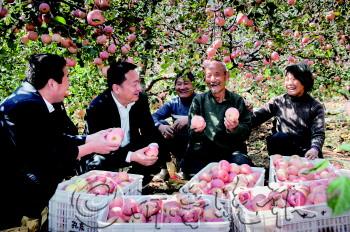 金秋季节,位于沂蒙山区的沂源县七十万亩林果一派丰收景象。农行沂源县支行近年来有计划地增加涉农贷款,特别是自推广惠农贷款业务以来,更是优先扶持农民发展林果业。到9月末全县农户贷款12000户,余额30350万元。图为该县中庄镇北刘庄村郑孔彦收获喜悦的情景。