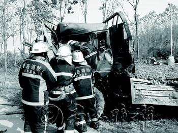本报10月30日讯(记者 潘旭业 通讯员 孙维 张坤洋) 为了躲避迎面开来的一辆面包车,29日中午,大货车司机急打方向盘,撞向路边隔离带,车上拉的20吨海鲜撒了一地,司机被困在严重变形的驾驶室内。 29日12时15分,黄岛区消防大队海王路中队接到群众报警称,位于黄岛区204国道大珠山路段发生一起交通事故,一辆拉着海鲜的大货车撞到路边隔离带,司机被困在变形的驾驶室内,情况十分危急。接到报警后,黄岛区海王路中队迅速出动消防官兵赶赴事故现场进行救援。 到达事故现场后,消防官兵看到,事故车辆为一辆满载海鲜的重型大货车,车辆撞向路边的隔离带,造成货车车头严重变形,现场一片狼藉,满是混杂着血迹的汽车残片和碎玻璃以及海鲜。货车驾驶员被困车内,消防官兵发现货车的整个前挡风玻璃全碎了,司机趴在驾驶室内已经昏迷,头部满是血。 由于货车的驾驶室严重变形,司机的双腿被变形的方向盘挤压住,消防官兵使用液压破拆工具,用液压扩张器对卡住驾驶员腿部的地方进行扩张,再慢慢将司机的双腿抬出。在消防官兵的不懈努力下,半个小时后,被困司机被消防官兵成功救出,这时120急救车也赶到了现场,将伤者送往医院进行救治。 据医生介绍,大货车司机脸部、胳膊等多处擦伤,双腿骨折,头部有伤需要进一步救治。后经了解,由于货车为躲避迎面而来的面包车,导致司机撞上隔离带。目前,事故正在进一步处理当中。