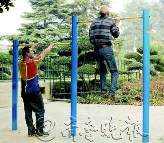 时间:2013年10月12日 自述:看到大爷连续做了六七个拉臂,气不喘、心不慌,年轻体壮的小伙子自叹不如。 点评:年轻人,赶紧练起来吧!