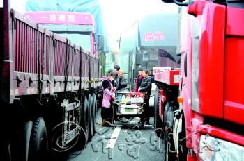 本报11月2日讯(记者 宋磊 马志勇) 从1日夜间开始,山东大部分地区开始被大雾笼罩。2日,受大雾影响,德州境内大部分高速入口从凌晨起关闭,截至12时许,京台高速德州段鲁冀收费站前被堵的车辆绵延十几公里,大部分车辆被堵超过12小时。山东境内多条高速的百余个收费站临时关闭。济南机场共有22趟早出港航班出现延误,直至10点后航班才恢复起降。 2日10时许,在京台高速德州收费站入口处,等待放行的车流中,从安徽前往北京接病人的救护车司机介绍,因大雾天气,车在泰安被分流下高速,从国道行驶数小时到达德州,准备重新上高速,却被堵在入口处。 在一座高速桥前,附近的司机通过绳索从桥下的商贩处购买食品,甚至有村民将摊煎饼的三轮车搬上高速,被堵十多个小时的人将三轮车围满,吃上几口热煎饼,继续焦急等待放行。 根据山东交通出行网提供的信息,从1日晚10点左右,山东、河北境内多地出现能见度小于500米的大雾和中度雾霾天气。1日晚10点半,S12滨德高速德州东、德州北、德州西站入口;G20青银高速禹城南、高唐、高唐东、夏津站入口;G3京台高速德州、德州南、平原、平原南、禹城、齐河站入口,鲁冀北京方向出入口临时关闭。 截至2日上午10点,我省S12滨德高速、G20青银高速、S1济聊高速、G18荣乌高速、G35济广高速、G2001济南绕城高速、G25长深高速、S29滨莱高速、S32菏东高速、S7201东营港疏港高速、G2京沪高速、S14高邢高速等十余条高速公路的100多个收费站出入口因大雾临时关闭。 截至下午4点,S14高邢高速的临清收费站仍受大雾影响临时封闭,G3京台高速的滕州、枣庄等4个收费站间隔放行。受大雾影响,当天我省高速发生多起事故,其中G3京台高速K433北京方向发生货车追尾事故,造成长时间压车,交警一度临时封闭了十余个收费站。 大雾也对我省民航交通造成了影响。记者从济南国际机场了解到,因大雾天气,2日济南机场共有22趟早出港航班出现延误,上午10点后,能见度达到飞机起降标准,航班陆续恢复正常。
