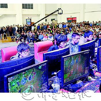 | 《英雄联盟》济南高校挑战赛决赛现场,选手忘我“战斗”。 |  | |