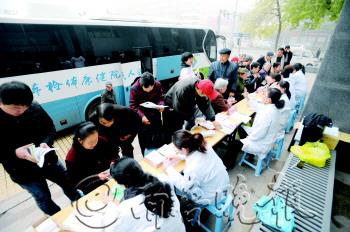 本报11月2日讯(记者 尹明亮 马云云 乔显佳) 查了眼睛看看腰腿,再把把脉求个药方,2日,由山东省卫生厅、山东省科技馆及本报联合举办的首届齐鲁晚报读者健康节在山东省科技馆举办,20多家省城大医院现场为千余名市民进行了免费查体、诊病。 在山东省科技馆偌大的展厅里,各大综合性及专科医院齐聚一堂,上午9点钟刚开门,不少市民已经冒着大雾赶了过来。“年纪大了,整天腿疼腰疼的,听说今天专家多,过来咨询咨询。”从门口的体检车到大厅里的血压测量、再到中医专家的把脉咨询,从堤口路赶来的孟女士几乎是挨家医院问了一遍,“收获挺多,还不用花钱,门口的中医专家给开了个药方,回家敷一敷试试,可能真管用。” 市民杨先生和爱人专门从洪楼乘坐公交车赶来。在中医检测仪前排队等候了大约半小时后才排上号。只见他把手指放到检测仪下方,仪器上的屏幕马上显示血液循环情况。医生告诉老人,他的血管偏细,建议多做运动。来这一展台做检测的市民络绎不绝,医生几乎没有休息的空儿。 拿着本报刊发的公众健康调查问卷,读者认认真真地填完并投进收集箱,不少人都是结伴而来,“晚报的《生命周刊》我每期都看,学到不少健康知识,比各种乱七八糟的健康书籍实用多了。”在义诊现场,一位读者一边向医生咨询着问题,还不忘问问记者下期《生命周刊》会有什么内容。 在健康节活动现场,记者注意到,不少读者在咨询时都拿自己在健康书籍上学来的治病养生知识和专家交流,令专家哭笑不得。对此,多个专家表示,目前销售的很多健康书籍都不严谨,往往有很多误导,提醒市民尤其是对健康比较关注的老年人,真有问题多去医院问问医生,切忌盲目靠着自己看健康读物学来的真假难辨的“健康知识”去治病。 “听过很多健康讲座,越听越迷糊,今天一听一问,很多不明白的都明白了。”在大雾天里,顶着雾霾参加完读者健康节,很多读者直称收获良多。(更多健康节报道详见5日本报《生命周刊》)